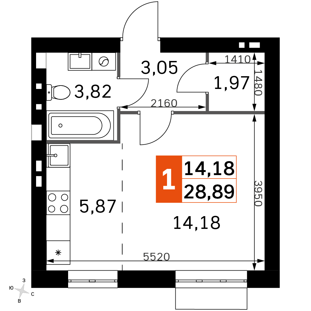 Площадь 28.89 м²